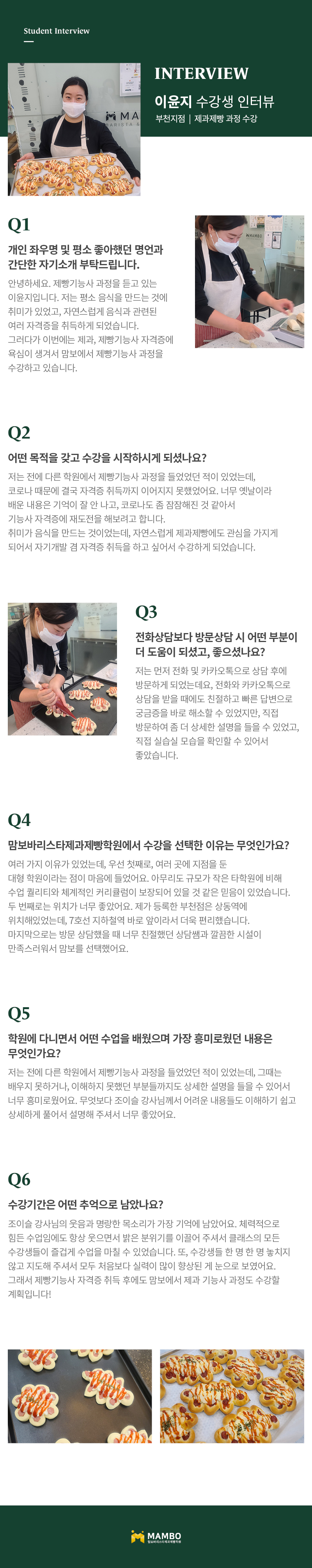 제1조 (개인정보 수집에 대한 동의)맘보교육그룹(이하 회사)는 이용자들이 회사의 개인정보취급방침 또는 이용약관의 내용에 대하여 “동의”버튼 또는 “취소”버튼을 클릭할 수 있는 절차를 마련하여, “동의”버튼을 클릭하면 개인정보 수집에 대해 동의한 것으로 봅니다. 제2조 (개인정보 수집항목) 온라인 문의를 통한 상담을 위해 처리하는 개인정보 항목은 아래와 같습니다. 수집항목 : 성명, 이메일, 전화번호 제3조 (개인정보의 이용목적) 회사는 이용자의 사전 동의 없이는 이용자의 개인 정보를 공개하지 않으며, 원활한 고객상담, 각종 서비스의 제공을 위해 아래와 같이 개인정보를 수집하고 있습니다. 모든 정보는 상기 목적에 필요한 용도 이외로는 사용되지 않으며 수집 정보의 범위나 사용 목적, 용도가 변경될 시에는 반드시 사전 동의를 구할 것입니다. - 성명 : 제품상담에 따른 본인 확인 - 이메일, 전화번호 : 제품상담 및 이벤트 관련 고지사항 전달, 새로운 서비스 및 신상품 정보 제공(DM, SMS, 이메일 등 이용) 이용자는 개인정보의 수집/이용에 대한 동의를 거부할 수 있습니다. 다만, 동의를 거부하는 경우 온라인 문의를 통한 상담은 불가하며 서비스 이용 및 혜택 제공에 제한을 받을 수 있습니다. 제4조 (개인정보의 보유 및 이용기간) 원칙적으로 개인정보 수집 및 이용목적이 달성된 후에는 해당 정보를 지체 없이 파기합니다. 그리고 상법, 전자상거래 등에서의 소비자보호에 관한 법률 등 관계법렵의 규정에 의하여 보존할 필요가 있는 경우 회사는 관계법령에서 정한 일정한 기간 동안 정보를 보관합니다. 이 경우 회사는 보관하는 정보를 그 보관의 목적으로만 이용하며 보존기간은 아래와 같습니다. - 계약 또는 청약철회 등에 관한 기록 : 5년(전자상거래등에서의 소비자보호에 관한 법률) - 소비자의 불만 또는 분쟁처리에 관한 기록 : 3년(전자상거래등에서의 소비자 보호에 관한 법률) - 시용정보의 수집/처리 및 이용 등에 관한 기록 : 3년(신용정보의 이용 및 보호에 관한 법률) - 회사는 귀중한 이용자의 개인정보를 안전하게 처리하며, 유출의 방지를 위하여 다음과 같은 방법을 통하여 개인정보를 파기합니다. - 종이에 출력된 개인정보는 분쇄기로 분쇄하거나 소각을 통하여 파기합니다. - 전자적 파일 형태로 저장된 개인정보는 기록을 재생할 수 없는 기술적 방법을 사용하여 삭제합니다.