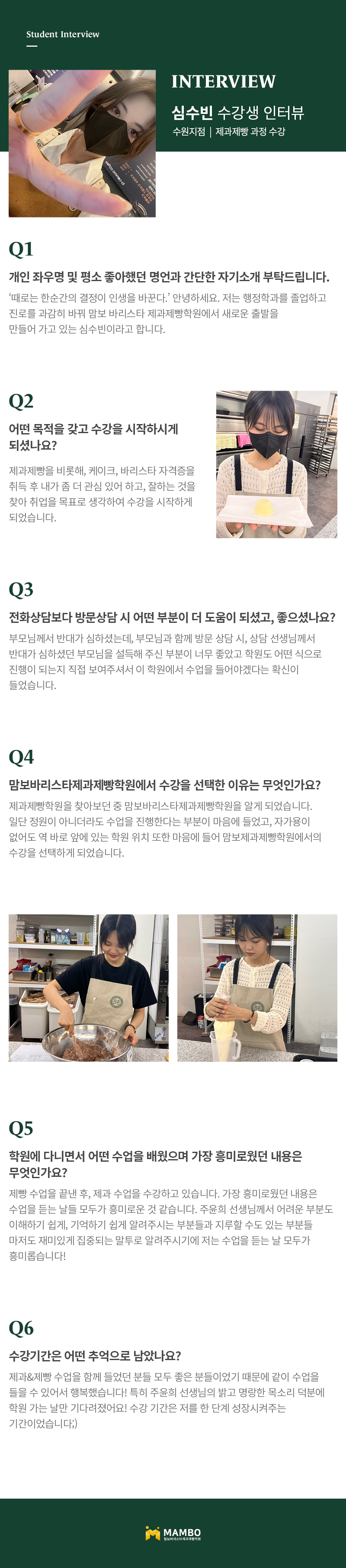 제1조 (개인정보 수집에 대한 동의)맘보교육그룹(이하 회사)는 이용자들이 회사의 개인정보취급방침 또는 이용약관의 내용에 대하여 “동의”버튼 또는 “취소”버튼을 클릭할 수 있는 절차를 마련하여, “동의”버튼을 클릭하면 개인정보 수집에 대해 동의한 것으로 봅니다. 제2조 (개인정보 수집항목) 온라인 문의를 통한 상담을 위해 처리하는 개인정보 항목은 아래와 같습니다. 수집항목 : 성명, 이메일, 전화번호 제3조 (개인정보의 이용목적) 회사는 이용자의 사전 동의 없이는 이용자의 개인 정보를 공개하지 않으며, 원활한 고객상담, 각종 서비스의 제공을 위해 아래와 같이 개인정보를 수집하고 있습니다. 모든 정보는 상기 목적에 필요한 용도 이외로는 사용되지 않으며 수집 정보의 범위나 사용 목적, 용도가 변경될 시에는 반드시 사전 동의를 구할 것입니다. - 성명 : 제품상담에 따른 본인 확인 - 이메일, 전화번호 : 제품상담 및 이벤트 관련 고지사항 전달, 새로운 서비스 및 신상품 정보 제공(DM, SMS, 이메일 등 이용) 이용자는 개인정보의 수집/이용에 대한 동의를 거부할 수 있습니다. 다만, 동의를 거부하는 경우 온라인 문의를 통한 상담은 불가하며 서비스 이용 및 혜택 제공에 제한을 받을 수 있습니다. 제4조 (개인정보의 보유 및 이용기간) 원칙적으로 개인정보 수집 및 이용목적이 달성된 후에는 해당 정보를 지체 없이 파기합니다. 그리고 상법, 전자상거래 등에서의 소비자보호에 관한 법률 등 관계법렵의 규정에 의하여 보존할 필요가 있는 경우 회사는 관계법령에서 정한 일정한 기간 동안 정보를 보관합니다. 이 경우 회사는 보관하는 정보를 그 보관의 목적으로만 이용하며 보존기간은 아래와 같습니다. - 계약 또는 청약철회 등에 관한 기록 : 5년(전자상거래등에서의 소비자보호에 관한 법률) - 소비자의 불만 또는 분쟁처리에 관한 기록 : 3년(전자상거래등에서의 소비자 보호에 관한 법률) - 시용정보의 수집/처리 및 이용 등에 관한 기록 : 3년(신용정보의 이용 및 보호에 관한 법률) - 회사는 귀중한 이용자의 개인정보를 안전하게 처리하며, 유출의 방지를 위하여 다음과 같은 방법을 통하여 개인정보를 파기합니다. - 종이에 출력된 개인정보는 분쇄기로 분쇄하거나 소각을 통하여 파기합니다. - 전자적 파일 형태로 저장된 개인정보는 기록을 재생할 수 없는 기술적 방법을 사용하여 삭제합니다.