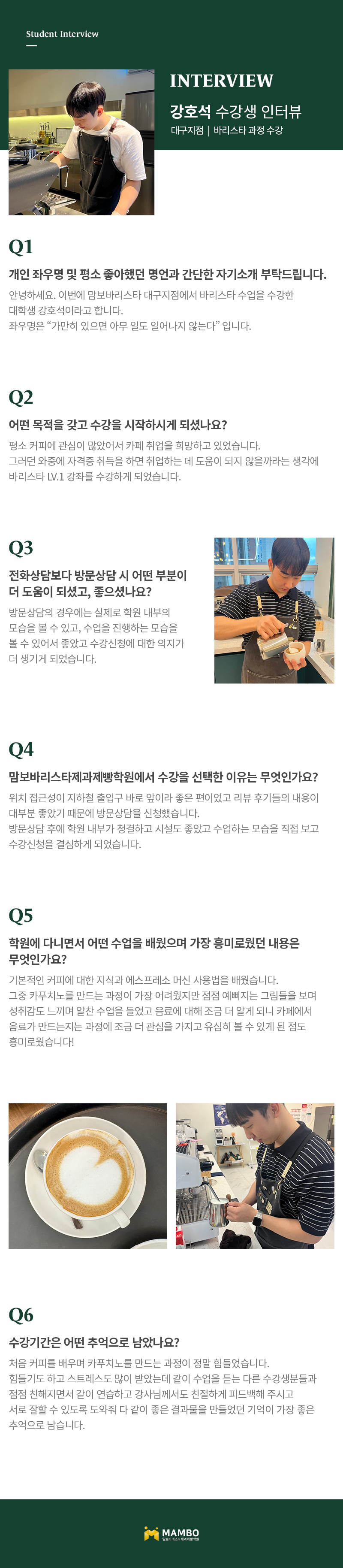 제1조 (개인정보 수집에 대한 동의)맘보교육그룹(이하 회사)는 이용자들이 회사의 개인정보취급방침 또는 이용약관의 내용에 대하여 “동의”버튼 또는 “취소”버튼을 클릭할 수 있는 절차를 마련하여, “동의”버튼을 클릭하면 개인정보 수집에 대해 동의한 것으로 봅니다. 제2조 (개인정보 수집항목) 온라인 문의를 통한 상담을 위해 처리하는 개인정보 항목은 아래와 같습니다. 수집항목 : 성명, 이메일, 전화번호 제3조 (개인정보의 이용목적) 회사는 이용자의 사전 동의 없이는 이용자의 개인 정보를 공개하지 않으며, 원활한 고객상담, 각종 서비스의 제공을 위해 아래와 같이 개인정보를 수집하고 있습니다. 모든 정보는 상기 목적에 필요한 용도 이외로는 사용되지 않으며 수집 정보의 범위나 사용 목적, 용도가 변경될 시에는 반드시 사전 동의를 구할 것입니다. - 성명 : 제품상담에 따른 본인 확인 - 이메일, 전화번호 : 제품상담 및 이벤트 관련 고지사항 전달, 새로운 서비스 및 신상품 정보 제공(DM, SMS, 이메일 등 이용) 이용자는 개인정보의 수집/이용에 대한 동의를 거부할 수 있습니다. 다만, 동의를 거부하는 경우 온라인 문의를 통한 상담은 불가하며 서비스 이용 및 혜택 제공에 제한을 받을 수 있습니다. 제4조 (개인정보의 보유 및 이용기간) 원칙적으로 개인정보 수집 및 이용목적이 달성된 후에는 해당 정보를 지체 없이 파기합니다. 그리고 상법, 전자상거래 등에서의 소비자보호에 관한 법률 등 관계법렵의 규정에 의하여 보존할 필요가 있는 경우 회사는 관계법령에서 정한 일정한 기간 동안 정보를 보관합니다. 이 경우 회사는 보관하는 정보를 그 보관의 목적으로만 이용하며 보존기간은 아래와 같습니다. - 계약 또는 청약철회 등에 관한 기록 : 5년(전자상거래등에서의 소비자보호에 관한 법률) - 소비자의 불만 또는 분쟁처리에 관한 기록 : 3년(전자상거래등에서의 소비자 보호에 관한 법률) - 시용정보의 수집/처리 및 이용 등에 관한 기록 : 3년(신용정보의 이용 및 보호에 관한 법률) - 회사는 귀중한 이용자의 개인정보를 안전하게 처리하며, 유출의 방지를 위하여 다음과 같은 방법을 통하여 개인정보를 파기합니다. - 종이에 출력된 개인정보는 분쇄기로 분쇄하거나 소각을 통하여 파기합니다. - 전자적 파일 형태로 저장된 개인정보는 기록을 재생할 수 없는 기술적 방법을 사용하여 삭제합니다.