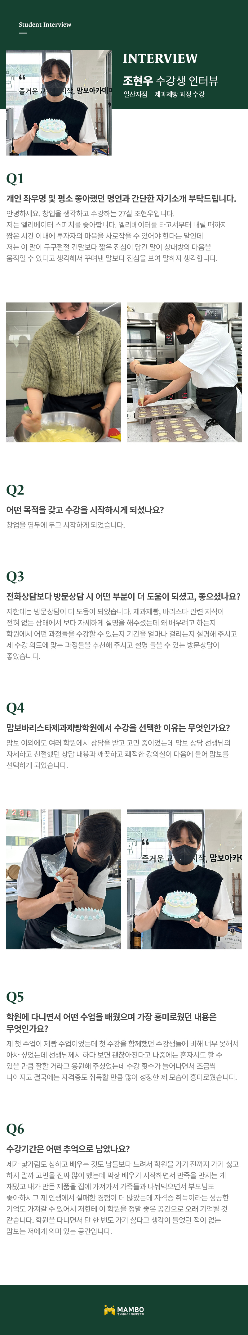 제1조 (개인정보 수집에 대한 동의)맘보교육그룹(이하 회사)는 이용자들이 회사의 개인정보취급방침 또는 이용약관의 내용에 대하여 “동의”버튼 또는 “취소”버튼을 클릭할 수 있는 절차를 마련하여, “동의”버튼을 클릭하면 개인정보 수집에 대해 동의한 것으로 봅니다. 제2조 (개인정보 수집항목) 온라인 문의를 통한 상담을 위해 처리하는 개인정보 항목은 아래와 같습니다. 수집항목 : 성명, 이메일, 전화번호 제3조 (개인정보의 이용목적) 회사는 이용자의 사전 동의 없이는 이용자의 개인 정보를 공개하지 않으며, 원활한 고객상담, 각종 서비스의 제공을 위해 아래와 같이 개인정보를 수집하고 있습니다. 모든 정보는 상기 목적에 필요한 용도 이외로는 사용되지 않으며 수집 정보의 범위나 사용 목적, 용도가 변경될 시에는 반드시 사전 동의를 구할 것입니다. - 성명 : 제품상담에 따른 본인 확인 - 이메일, 전화번호 : 제품상담 및 이벤트 관련 고지사항 전달, 새로운 서비스 및 신상품 정보 제공(DM, SMS, 이메일 등 이용) 이용자는 개인정보의 수집/이용에 대한 동의를 거부할 수 있습니다. 다만, 동의를 거부하는 경우 온라인 문의를 통한 상담은 불가하며 서비스 이용 및 혜택 제공에 제한을 받을 수 있습니다. 제4조 (개인정보의 보유 및 이용기간) 원칙적으로 개인정보 수집 및 이용목적이 달성된 후에는 해당 정보를 지체 없이 파기합니다. 그리고 상법, 전자상거래 등에서의 소비자보호에 관한 법률 등 관계법렵의 규정에 의하여 보존할 필요가 있는 경우 회사는 관계법령에서 정한 일정한 기간 동안 정보를 보관합니다. 이 경우 회사는 보관하는 정보를 그 보관의 목적으로만 이용하며 보존기간은 아래와 같습니다. - 계약 또는 청약철회 등에 관한 기록 : 5년(전자상거래등에서의 소비자보호에 관한 법률) - 소비자의 불만 또는 분쟁처리에 관한 기록 : 3년(전자상거래등에서의 소비자 보호에 관한 법률) - 시용정보의 수집/처리 및 이용 등에 관한 기록 : 3년(신용정보의 이용 및 보호에 관한 법률) - 회사는 귀중한 이용자의 개인정보를 안전하게 처리하며, 유출의 방지를 위하여 다음과 같은 방법을 통하여 개인정보를 파기합니다. - 종이에 출력된 개인정보는 분쇄기로 분쇄하거나 소각을 통하여 파기합니다. - 전자적 파일 형태로 저장된 개인정보는 기록을 재생할 수 없는 기술적 방법을 사용하여 삭제합니다.