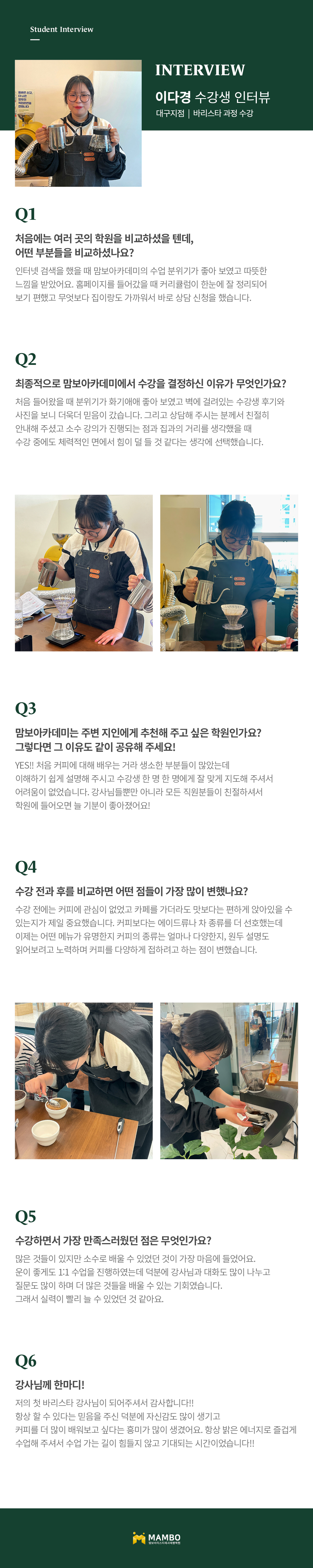 제1조 (개인정보 수집에 대한 동의)맘보교육그룹(이하 회사)는 이용자들이 회사의 개인정보취급방침 또는 이용약관의 내용에 대하여 “동의”버튼 또는 “취소”버튼을 클릭할 수 있는 절차를 마련하여, “동의”버튼을 클릭하면 개인정보 수집에 대해 동의한 것으로 봅니다. 제2조 (개인정보 수집항목) 온라인 문의를 통한 상담을 위해 처리하는 개인정보 항목은 아래와 같습니다. 수집항목 : 성명, 이메일, 전화번호 제3조 (개인정보의 이용목적) 회사는 이용자의 사전 동의 없이는 이용자의 개인 정보를 공개하지 않으며, 원활한 고객상담, 각종 서비스의 제공을 위해 아래와 같이 개인정보를 수집하고 있습니다. 모든 정보는 상기 목적에 필요한 용도 이외로는 사용되지 않으며 수집 정보의 범위나 사용 목적, 용도가 변경될 시에는 반드시 사전 동의를 구할 것입니다. - 성명 : 제품상담에 따른 본인 확인 - 이메일, 전화번호 : 제품상담 및 이벤트 관련 고지사항 전달, 새로운 서비스 및 신상품 정보 제공(DM, SMS, 이메일 등 이용) 이용자는 개인정보의 수집/이용에 대한 동의를 거부할 수 있습니다. 다만, 동의를 거부하는 경우 온라인 문의를 통한 상담은 불가하며 서비스 이용 및 혜택 제공에 제한을 받을 수 있습니다. 제4조 (개인정보의 보유 및 이용기간) 원칙적으로 개인정보 수집 및 이용목적이 달성된 후에는 해당 정보를 지체 없이 파기합니다. 그리고 상법, 전자상거래 등에서의 소비자보호에 관한 법률 등 관계법렵의 규정에 의하여 보존할 필요가 있는 경우 회사는 관계법령에서 정한 일정한 기간 동안 정보를 보관합니다. 이 경우 회사는 보관하는 정보를 그 보관의 목적으로만 이용하며 보존기간은 아래와 같습니다. - 계약 또는 청약철회 등에 관한 기록 : 5년(전자상거래등에서의 소비자보호에 관한 법률) - 소비자의 불만 또는 분쟁처리에 관한 기록 : 3년(전자상거래등에서의 소비자 보호에 관한 법률) - 시용정보의 수집/처리 및 이용 등에 관한 기록 : 3년(신용정보의 이용 및 보호에 관한 법률) - 회사는 귀중한 이용자의 개인정보를 안전하게 처리하며, 유출의 방지를 위하여 다음과 같은 방법을 통하여 개인정보를 파기합니다. - 종이에 출력된 개인정보는 분쇄기로 분쇄하거나 소각을 통하여 파기합니다. - 전자적 파일 형태로 저장된 개인정보는 기록을 재생할 수 없는 기술적 방법을 사용하여 삭제합니다.