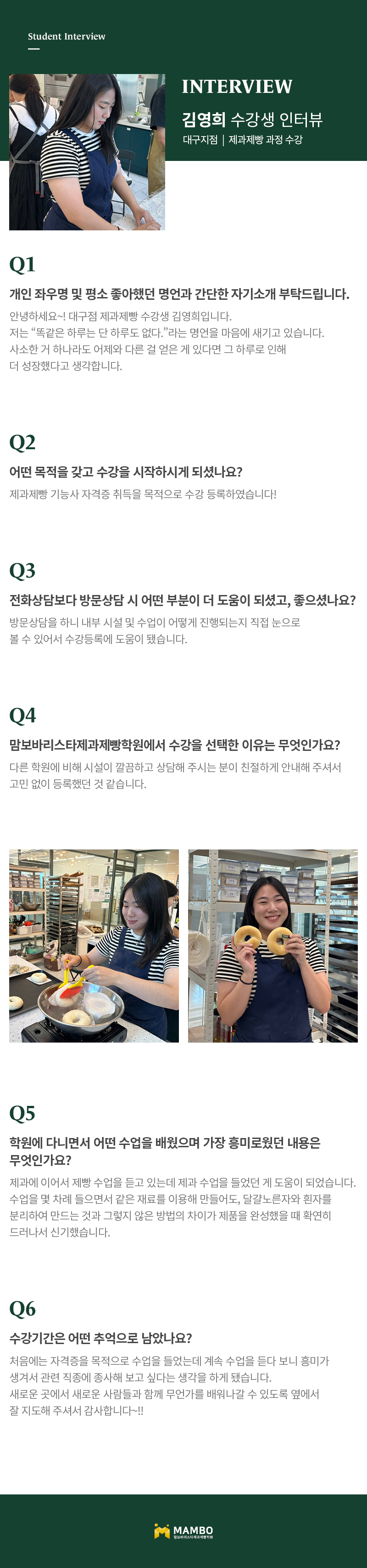 맘보학원과 함께 한 수강생들과 협약업체 실무자들의 인터뷰 입니다.