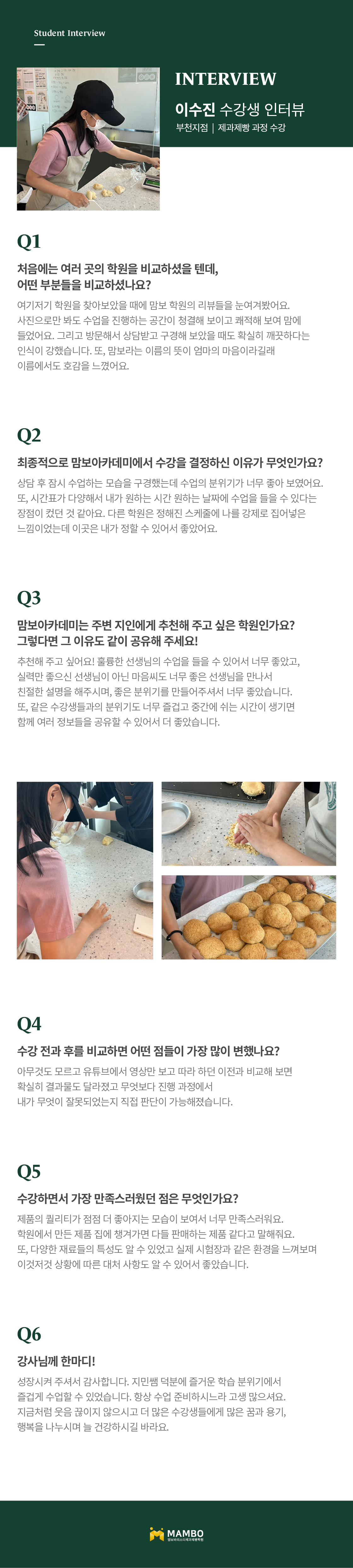 맘보학원과 함께 한 수강생들과 협약업체 실무자들의 인터뷰 입니다.